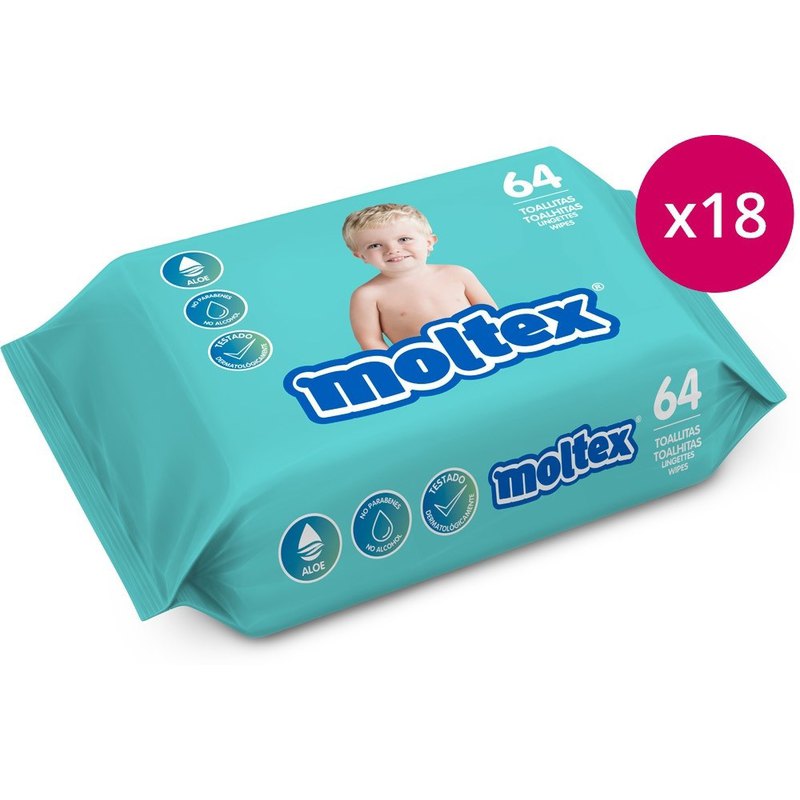 Las toallitas húmedas Moltex están diseñadas para limpiar y refrescar de forma segura la piel de tu bebé. Con Aloe Vera; sin alcohol; testadas dermatológicamente.